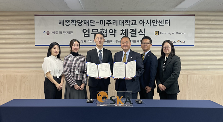 세종학당재단(이사장 직무대리 사무총장 최현승, 이하 재단)은 지난 10월 30일, 미국 미주리대학교 아시안센터(소장 김상순)와 세종한국어평가(SKA, iSKA) 시행을 위한 업무협약을 세종학당재단 회의실에서 체결했습니다.