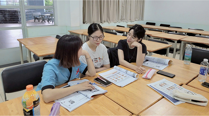 유엉 후엔 바오 짠 님(맨 오른쪽)과 비엔호아 세종학당 학습자들이 한국어 공부를 하는 모습
