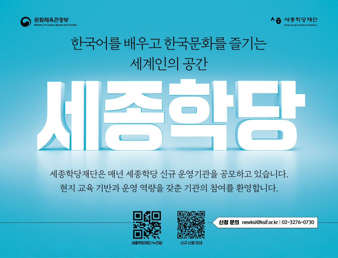 재단 관계자는 “세계 여러 지역에서 한국어와 한국문화에 대한 관심이 꾸준히 높아지고 있는 흐름에 맞춰 적극적으로 세종학당을 확대할 계획”이라며, “이번 공모를 통해 양질의 한국어 교육 기반을 갖춘 운영기관을 적극 발굴하고, 국내외 기관들과의 협력을 강화해 지속 가능한 세종학당 운영 환경을 만들어 나갈 것”이라고 밝혔습니다.