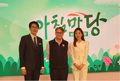 KBS1 ❬아침마당❭과 tvN ❬유 퀴즈 온 더 블록❭에 출연해 진행자들과 기념사진을 촬영한 로스 킹 교수(가운데)