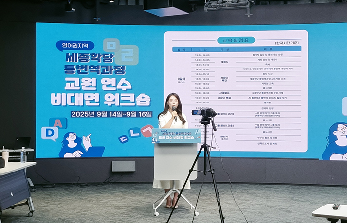 Approximately 160 Korean language teachers from KSIs in English-speaking regions—including the United States, Saudi Arabia, India, Canada, the Philippines, and Australia—participated in the workshop after pre-registration. The program focused on practical content, including the significance of translation and interpretation courses, effective textbook utilization, ethics and evaluation in AI-based translation and interpretation, and group discussions on classroom management strategies.
