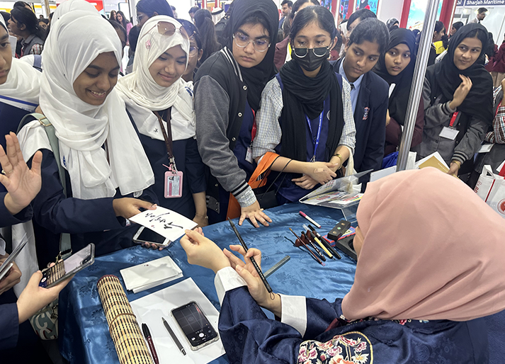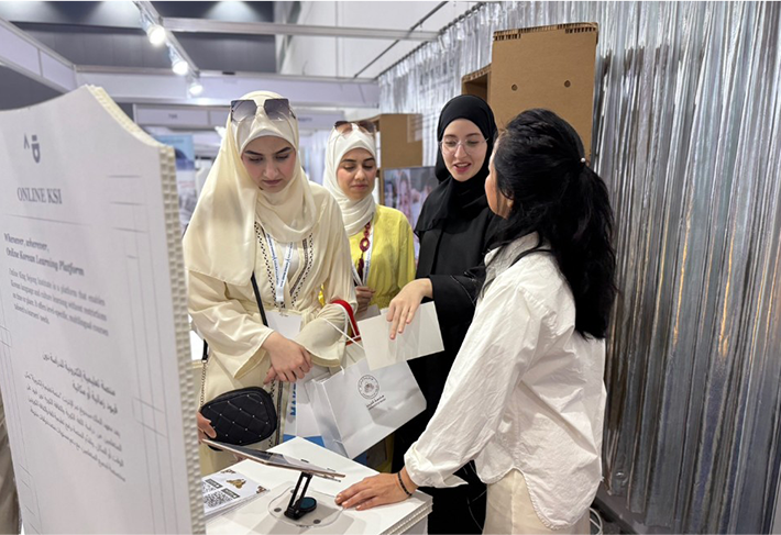At the exhibition, the KSIF showcased a wide range of Korean language and culture teaching materials developed in-house, including standard textbooks as well as specialized materials for translation and interpretation, business Korean, and other specific purposes. The KSIF also actively promoted the Sejong Korean Language Assessment (SKA), a comprehensive evaluation tool for Korean language proficiency. Notably, there was strong participation in the on-site registration assistance that the KSIF provided for visitors wanting to take the upcoming SKA test scheduled to be held in Abu Dhabi on November 15. A supplementary event of writing visitors names in Korean calligraphy proved especially popular, drawing steady interest and enthusiasm.