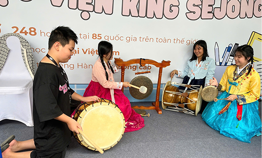 On the second day of the festival, KSI Hanoi 1 operated its experience space from early morning, offering thoughtfully prepared gifts to participants. Visitors to the KSI space were able to try playing samulnori instruments themselves, and attendees dressed in hanbok enjoyed handling the instruments. Dinh Thi Thuy Linh, an operations staff member at KSI Hanoi 1, commented, “This event was meaningful in that it made the KSI more familiar to Hanoi residents and the Vietnamese people. We are delighted to have received such a positive response from so many participants thanks to this experience programs, which was prepared for all age groups. We hope to continue to create opportunities for people who love Korean language and culture to participate and enjoy hands-on experiences.”