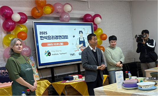The program also showed Korean language classes at KSI Tashkent 1 as well as learners experiencing Korean culture firsthand. The Korean Food Cooking Contest and the Kimchi Festival held in December were introduced as representative cultural events at KSI Tashkent 1, demonstrating how Korean language education is expanding into Korean cultural activities. Shamitdinova Ugloy, who participated in the Kimchi Festival, said, “I was so happy to make kimchi myself instead of only seeing it at Korean restaurants. At KSI Tashkent 1, I love that we can enjoy Korean culture through various hands-on activities in addition to Korean language classes.”