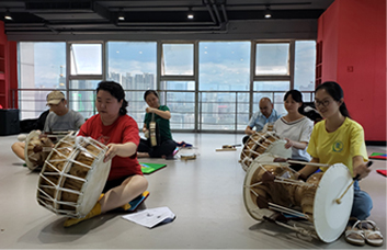 ▲ On last July 4th, the students of King Sejong Institute Xian are taking the lecture on Samulnori of Sejong Culture Academy.